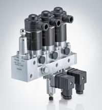 Un bloque de válvulas combina distintas válvulas para activar consumidores independientes.